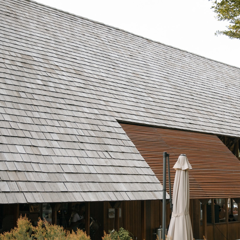 หลังคาที่ทำจากแผ่นไม้สนขนาดเล็กที่เรียงซ้อนกันเป็นชั้นๆ คล้ายกับกระเบื้อง มีลายไม้ที่เป็นธรรมชาติ และเมื่อนำมาใช้ทำหลังคา จะให้ความรู้สึกอบอุ่นและเป็นธรรมชาติแก่บ้านหรืออาคาร ผ่านกระบวนการอบ ลดความชื้น และวัสดุทำจากไม้จริงที่ดูดซับความร้อนได้น้อย จึงทําให้อากาศภายในบ้านเย็นสบาย ไม่ร้อนอบอ้าว