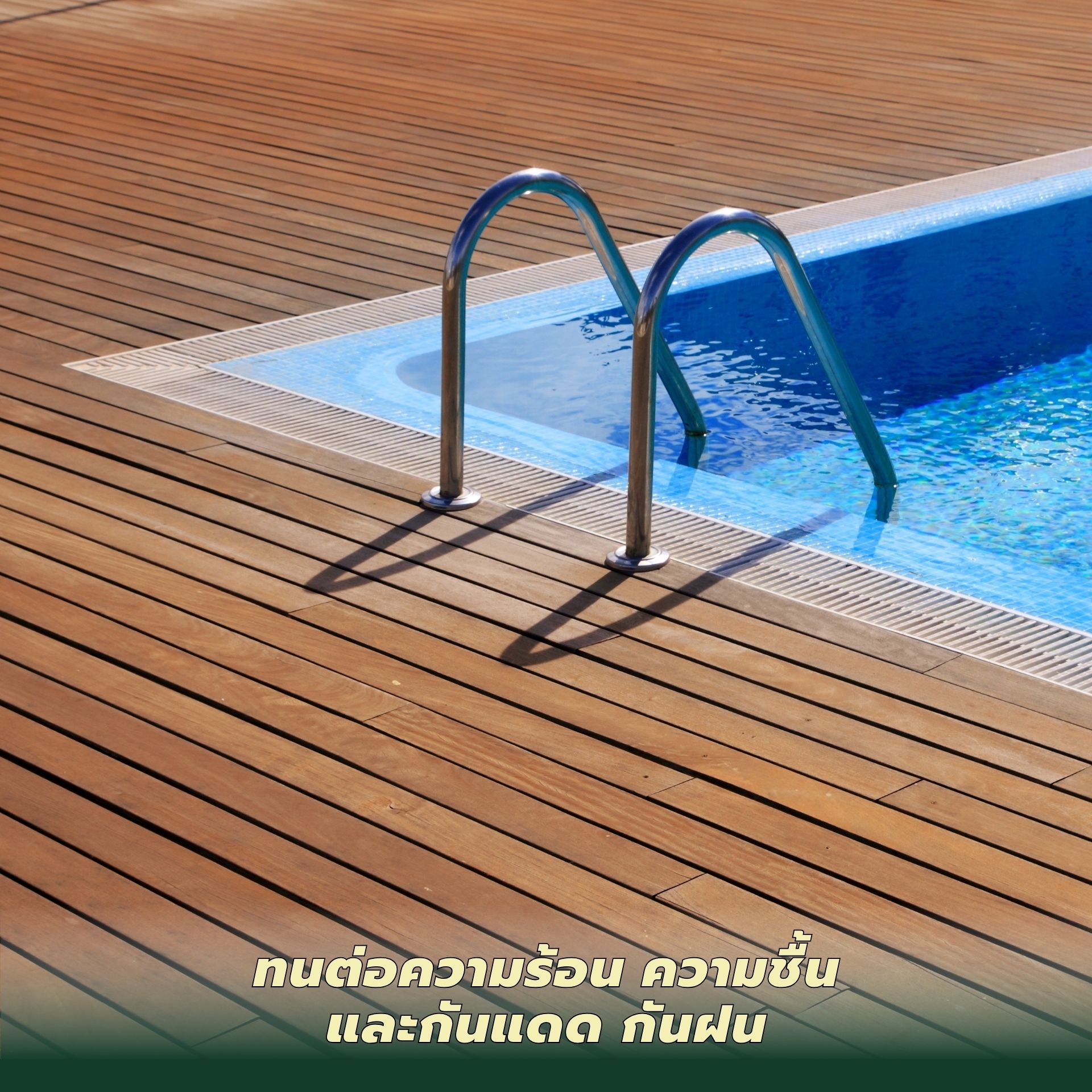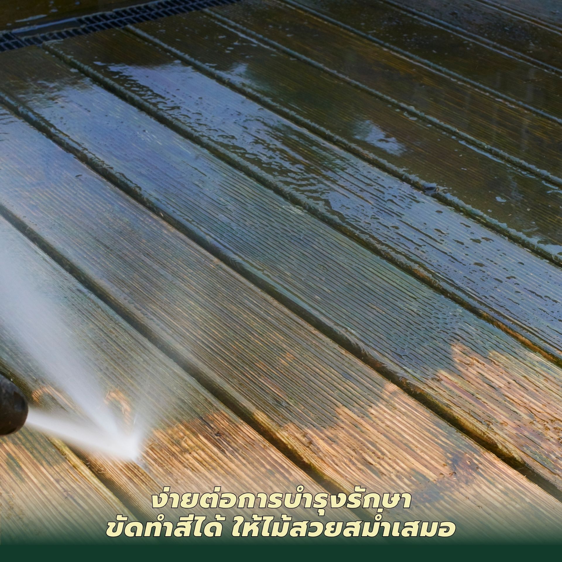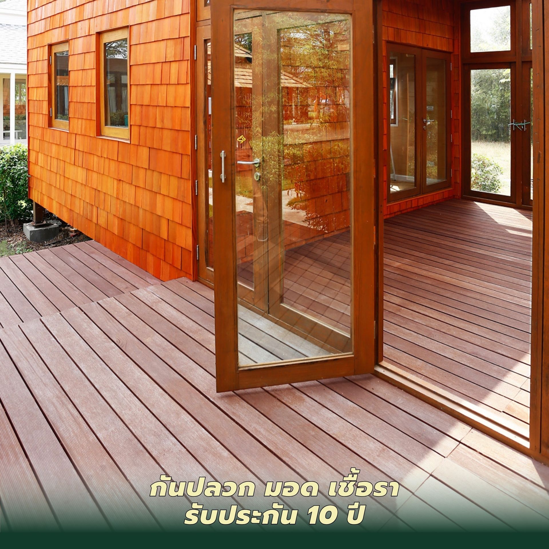 ส่วนต่อมา ด้วยความที่เป็นไม้แท้ ไม้จริง มีความเหนียว แข็งแรง ไม่แตกหักง่าย และมีประสิทธิภาพในการทนต่อสภาพอากาศ และความเปียกชื้นได้สูง แข็งแรงกว่าวัสดุทดแทน (ไฟเบอร์ซีเมนต์) ถึง 7 เท่า! มีอายุการใช้งานที่นานกว่า และสามารถรองรับน้ำหนักจากเฟอร์นิเจอร์หรือสิ่งของที่วางทับหนักๆได้