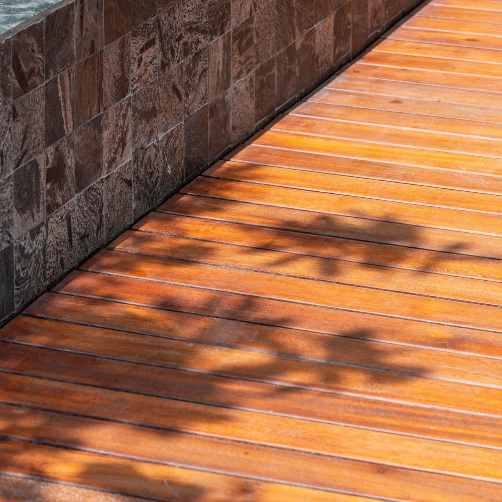 ไม้ ทำจากไม้เนื้อแข็งผ่านกระบวนการอบ อัดน้ำยากันปลวก เชื้อราทำลายเนื้อไม้ ให้สัมผัสธรรมชาติของเนื้อไม้อย่างแท้จริง ให้ความรู้สึกผ่อนคลาย ประหยัดเวลาในการติดตั้งเพราะทำสีสำหลังจากการเจาะ ตัด หรือ ยิงสกรูทุกครั้ง จะต้องฉีด หรือ ทาน้ำยา Chale't Solignum Timberlife และ ปิดหัวสกรูด้วย Acrylic Silicone เพื่อป้องกันปลวก และแมลงที่ทำลายเนื้อไม้